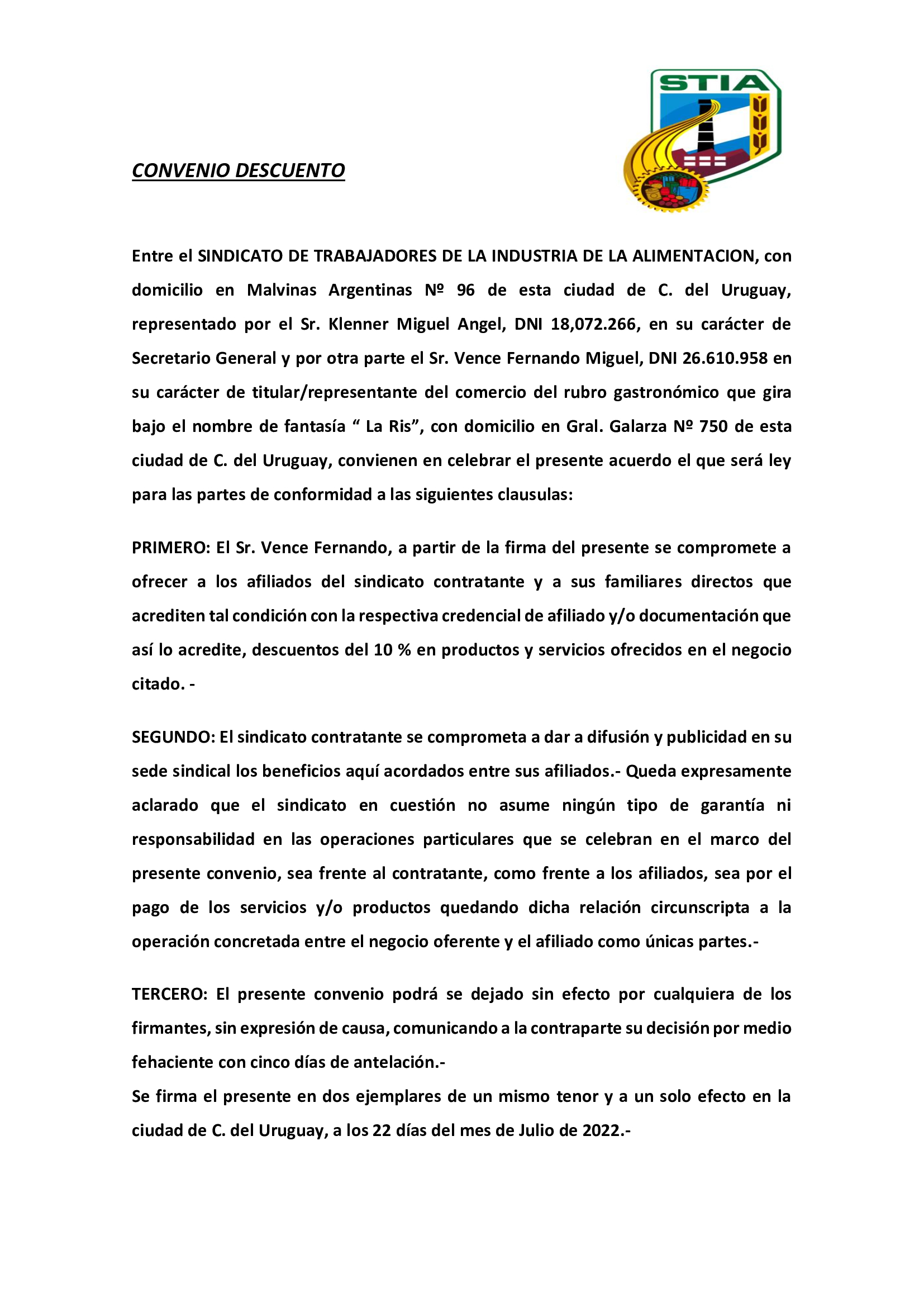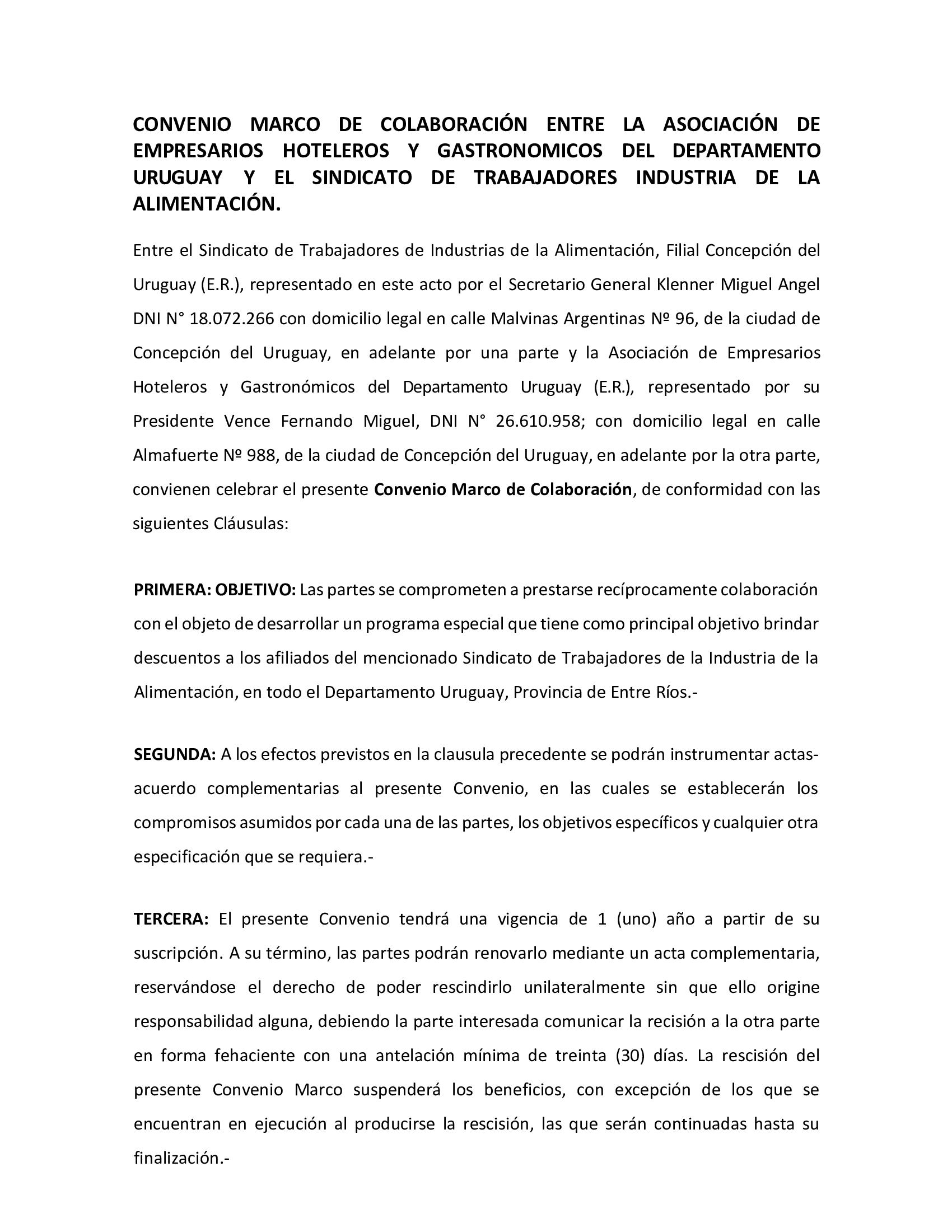 Acuerdo Hoteleros y Gastronómicos, Parte 2