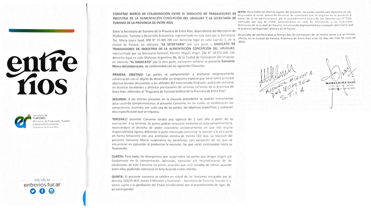 Acuerdo Secretaría de Turismo de Entre Ríos